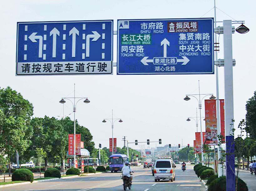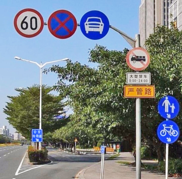 交通標志分為主標志和輔助標志兩大類。 1主標志 1.1 警告標志:警告車輛、行人注意危險地點的標志。 1.2 禁令標志:禁止或限制車輛、行人交通行為的標志。 1.3 指示標志:指示車輛、行人行進的標志。 1.4 指路標志:傳遞道路方向、地點、距離信息的標志。 1.5 旅游區(qū)標志:提供旅游景點方向、距離的標志。 1.6 道路施工安全標志:通告道路施工區(qū)通行的標志。 2輔助標志 附設(shè)在主標志下,起輔助說明作用的標志。